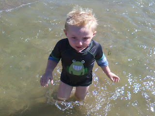 Owen helping his little sister jump the waves - How cute is that?????? |